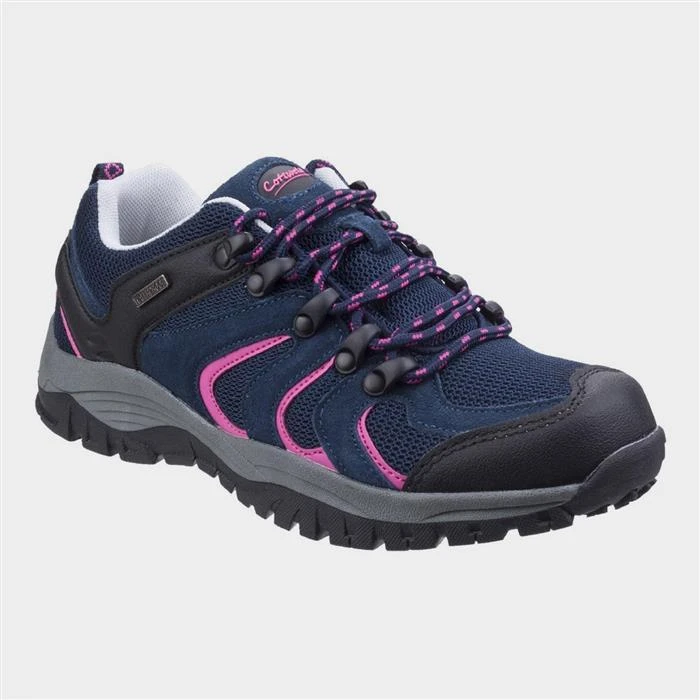 By Cotswold, these Stowell womens hiking shoes in navy are a lightweight, waterproof shoe suitable for trail walking, woodland walks and low intensity hill climbing. Moisture wicking lining combined with breathable mesh panels and waterproofing technology keeps feet comfortable.
