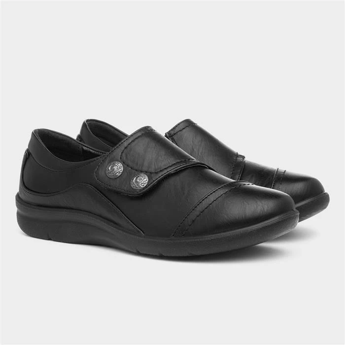 From Cushion Walk, these women’s shoes embrace a black upper with pewter trims. They feature an easy fasten strap for quick and easy fitting, while their padded insole provides comfort beneath your feet.