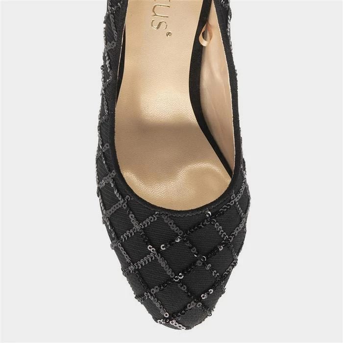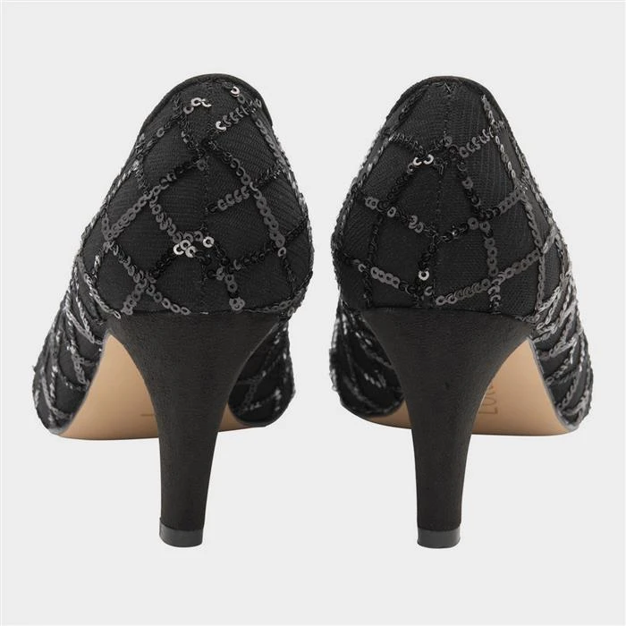 Designed by Lotus, the Lucia women’s shoes in black feature a regimented diamond shaped pattern crafted with a multitude of small sequins which accentuates the black textile upper. They have a soft almond pointed toe and a 7cm stiletto heel offering height. These shoes offer a hint of glamour to many looks.