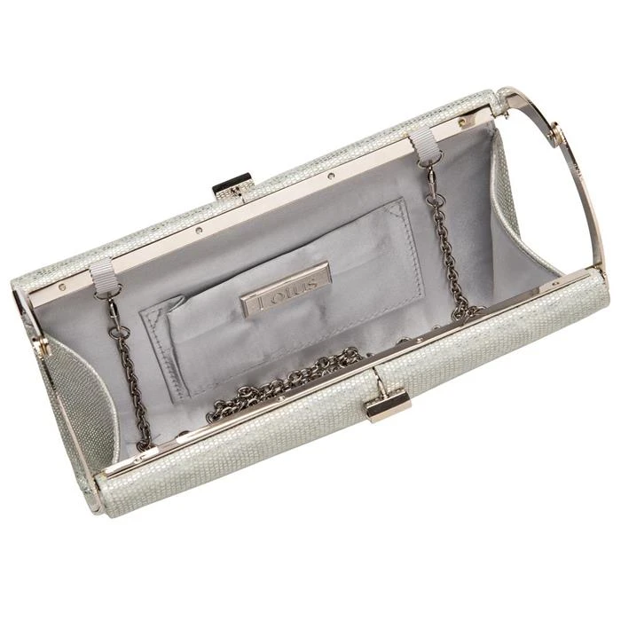 Designed by Lotus, the Rosanna women’s bag in metallic silver features a self-coloured reptile print that subtly adds interest to this otherwise understated Lotus clutch bag. It also features a clasp fastening, a detachable chain shoulder strap and an internal slip pocket. Pair with the Petunia heel in silver for a matching look.